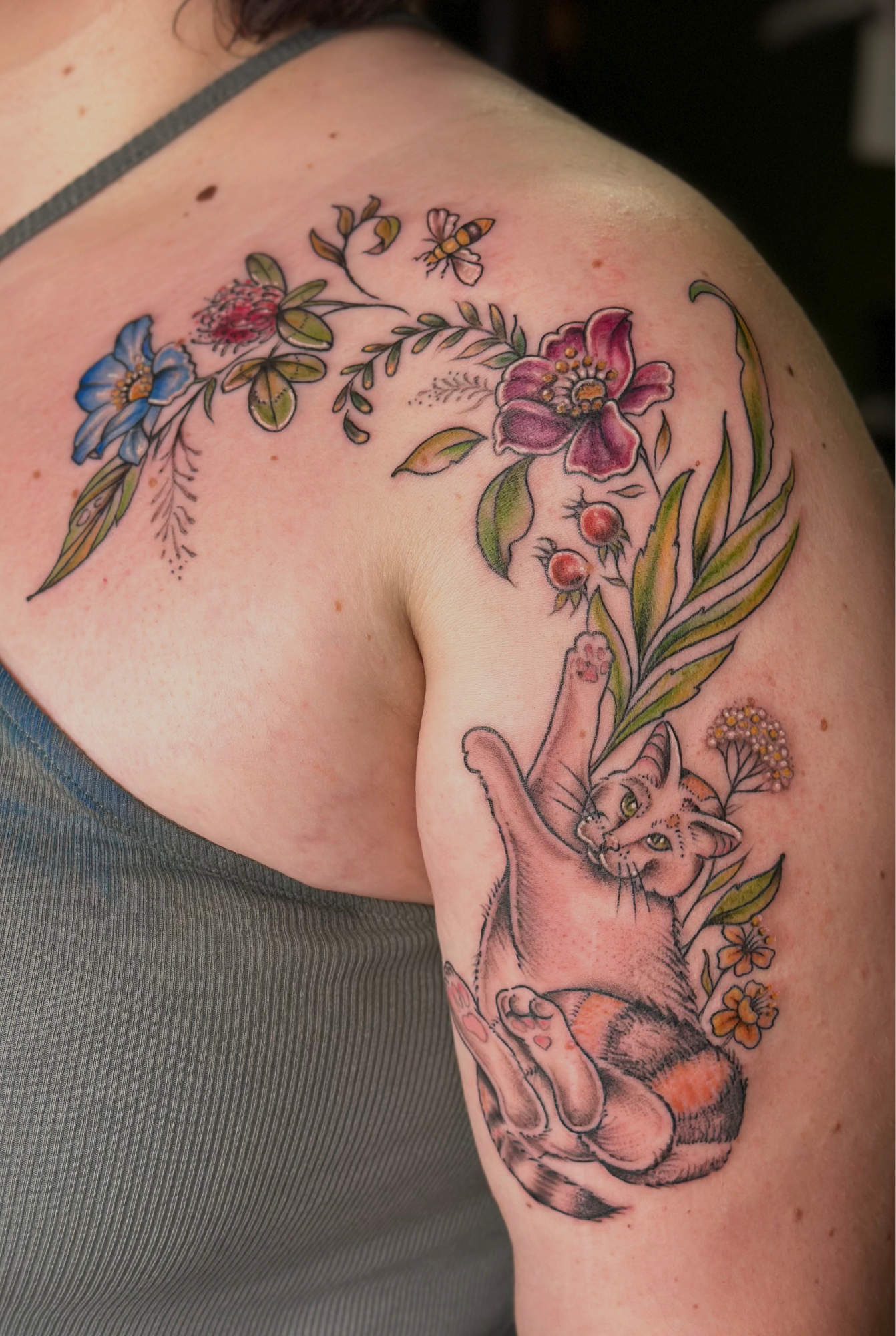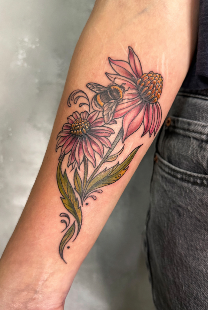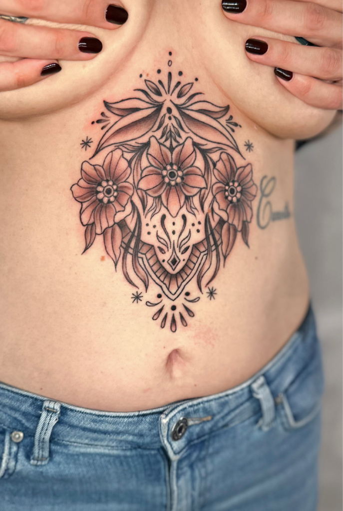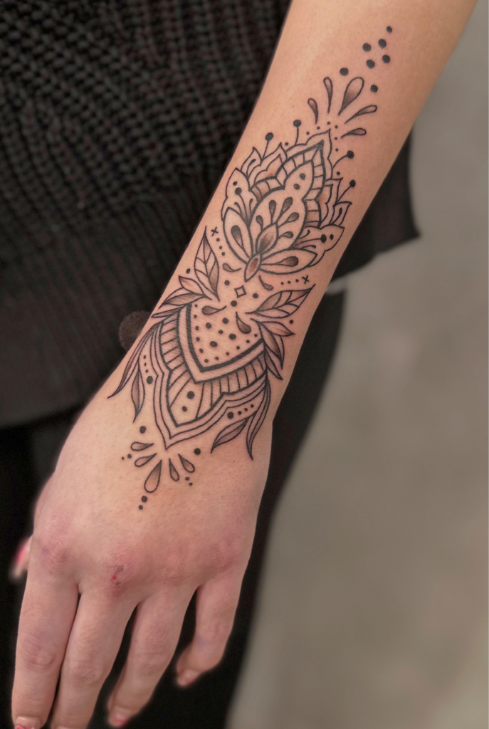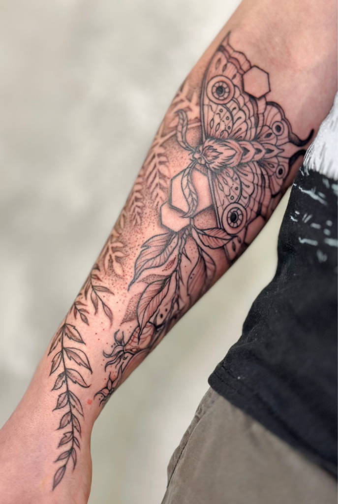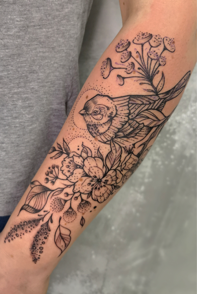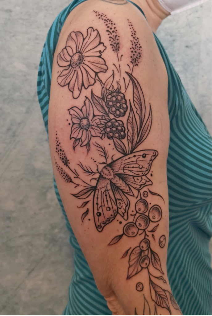 Das Tätowieren ist für mich eine Leidenschaft die es mir ermöglicht, meine künstlerischen Fähigkeiten sowie meine Leidenschaft zur Natur zu verbinden. Als Tätowiererin habe ich mich auf Motive spezialisiert, die eine tiefe Verbindung zur Natur vermitteln. Am liebsten bringe ich Blumen, Tiere und Ornamente unter die Haut meiner Kunden und Kundinnen.