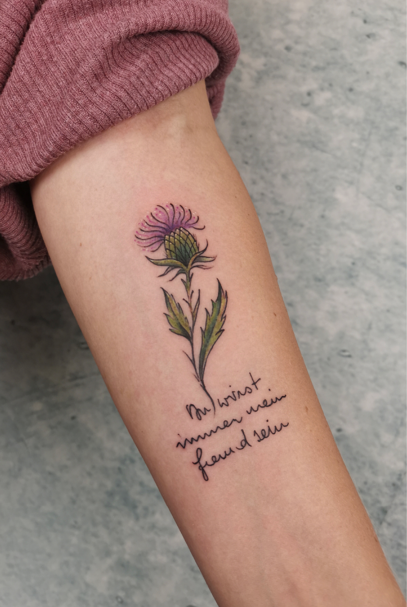 Das Tätowieren verlangt von dir lange Bewegungslosigkeit, das kühlt den Körper mitunter schnell aus. Achte auf warme Kleidung. Eine extra Strickjacke und ein dickes Paar Wollsocken können dir an deinem Tattoo-Tag gute Dienste erweisen, ja, auch im Sommer.