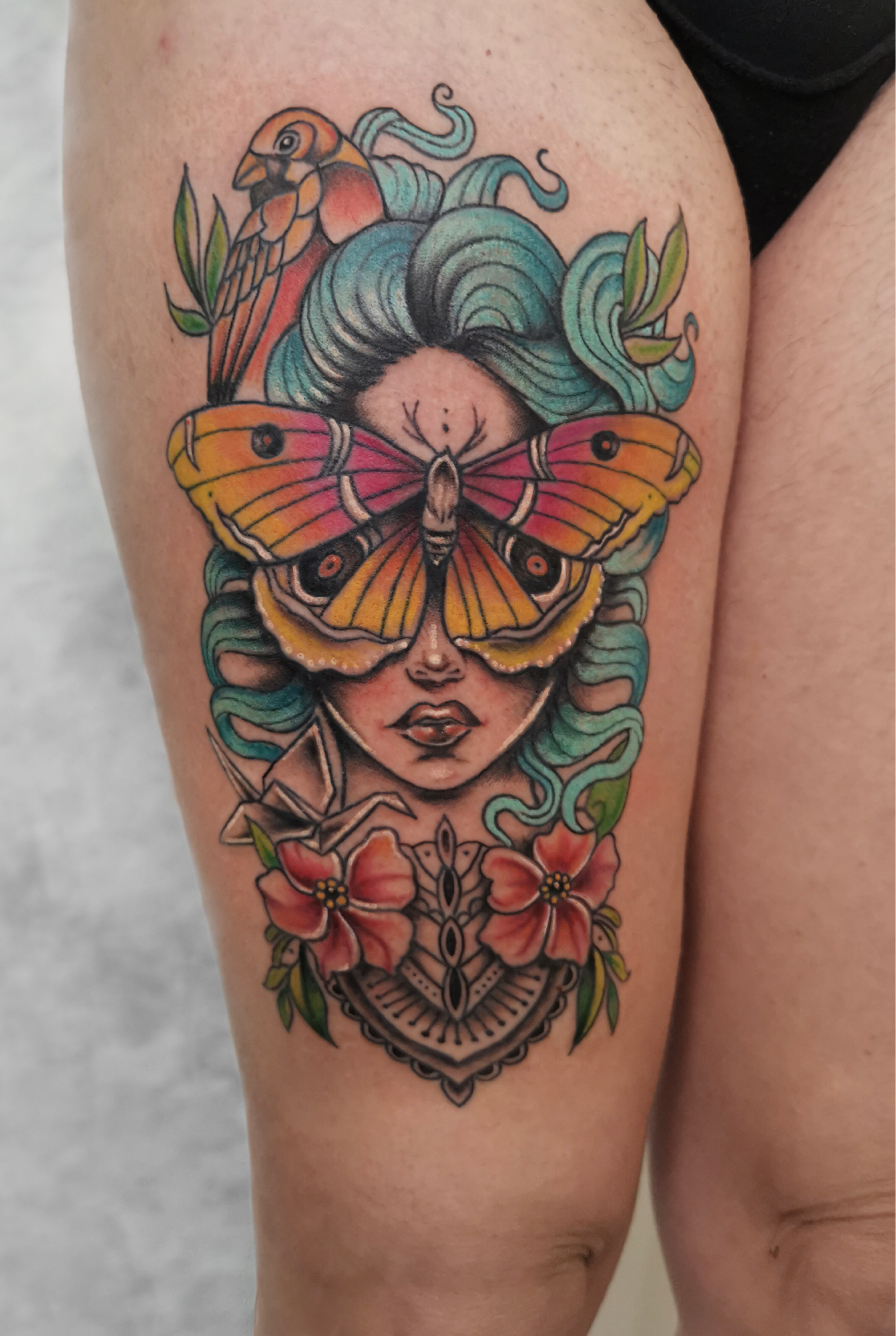 Meine Kund*innen bekommen immer ein individuell von mir entworfenes Tattoo. Ich habe keinen vorgedruckten Katalog oder Mappen, aus denen du dir ein Motiv aussuchen kannst. Du kannst zu deinem Besprechungstermin gern alles mitbringen, was dir hilft, deine Wünsche zu verbildlichen, sei es ein Foto vom Teppich deiner Oma, eine Skizze oder Grafiken, hier gibt es keine Grenzen… Bitte beachte, dass ich keine Tattoos anderer Tätowierer*innen kopieren werde. Das Tattoo, was du bei mir bekommst, gibt es nirgendwo auf der Welt, es ist ein so einzigartiges Kunstwerk wie sein*e Träger*in.